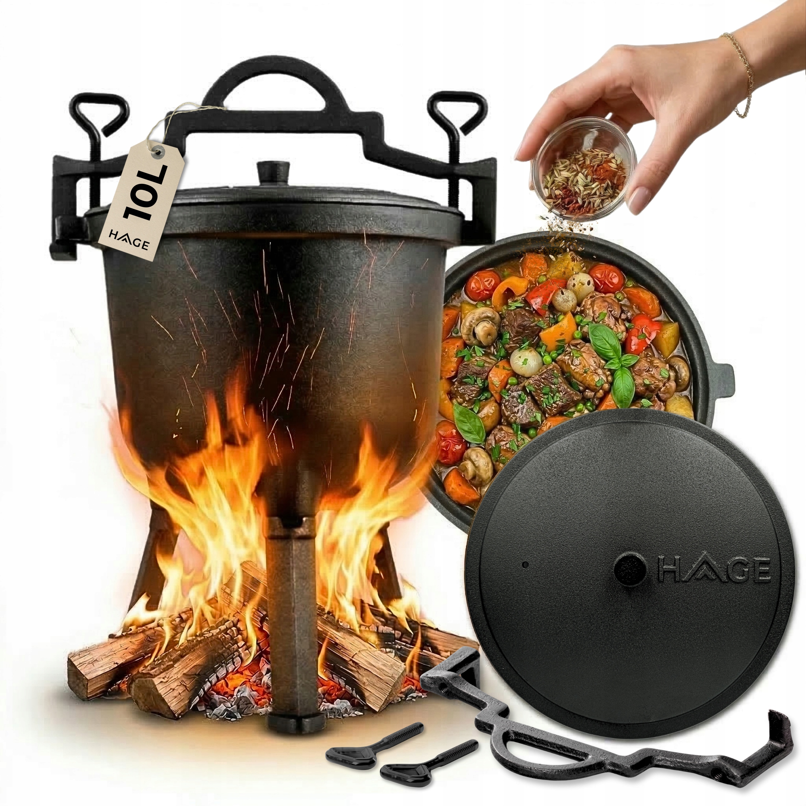 ⭐KOCIOŁEK ŻELIWNY GARNEK MYŚLIWSKI WĘGIERSKI PIECZONKI 10L NA OGNISKO GRILL⭐