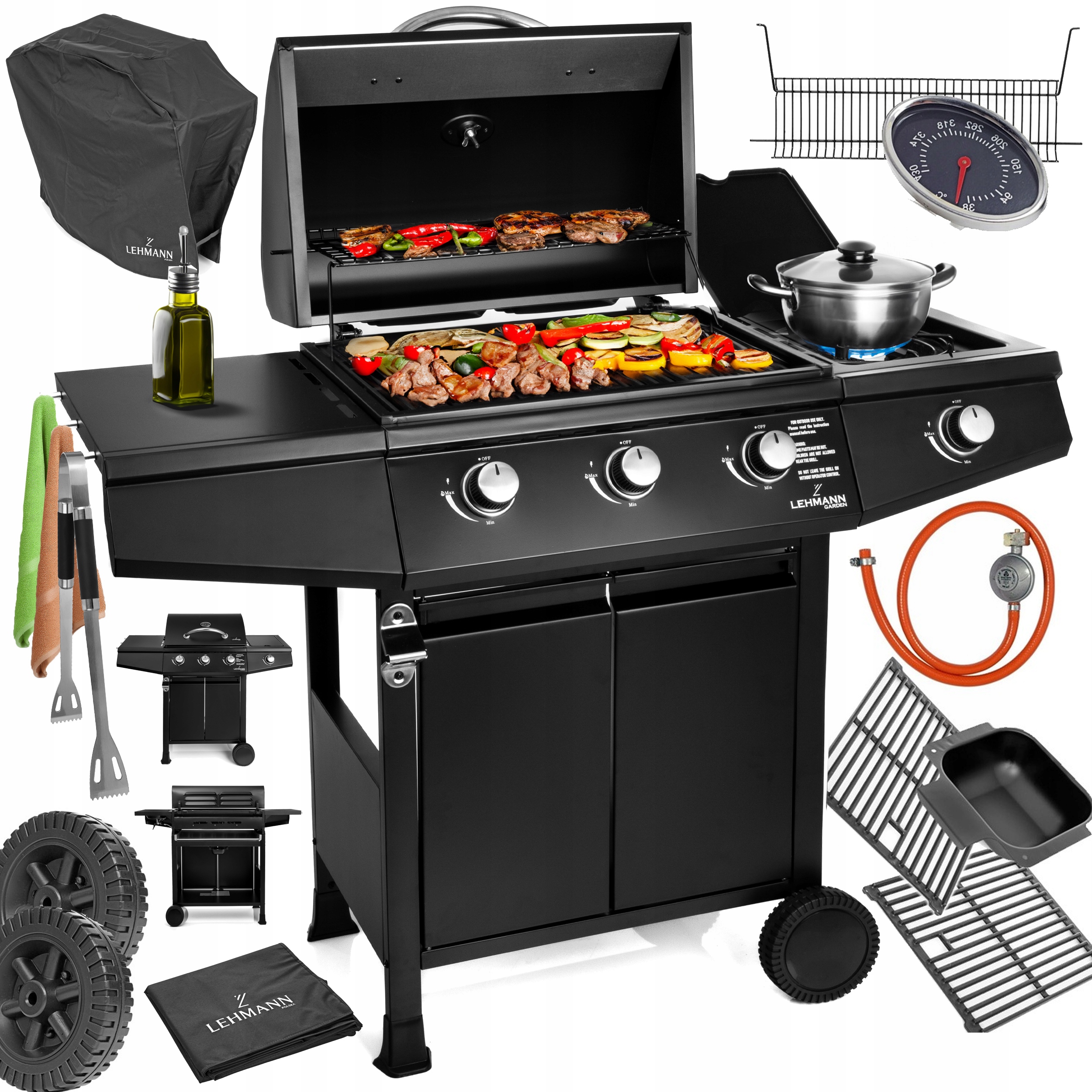 MOCNY GRILL GAZOWY STALOWY RUSZT ŻELIWNY 3+1 TEXAS CZARNY ZESTAW +POKROWIEC Marka Lehmann