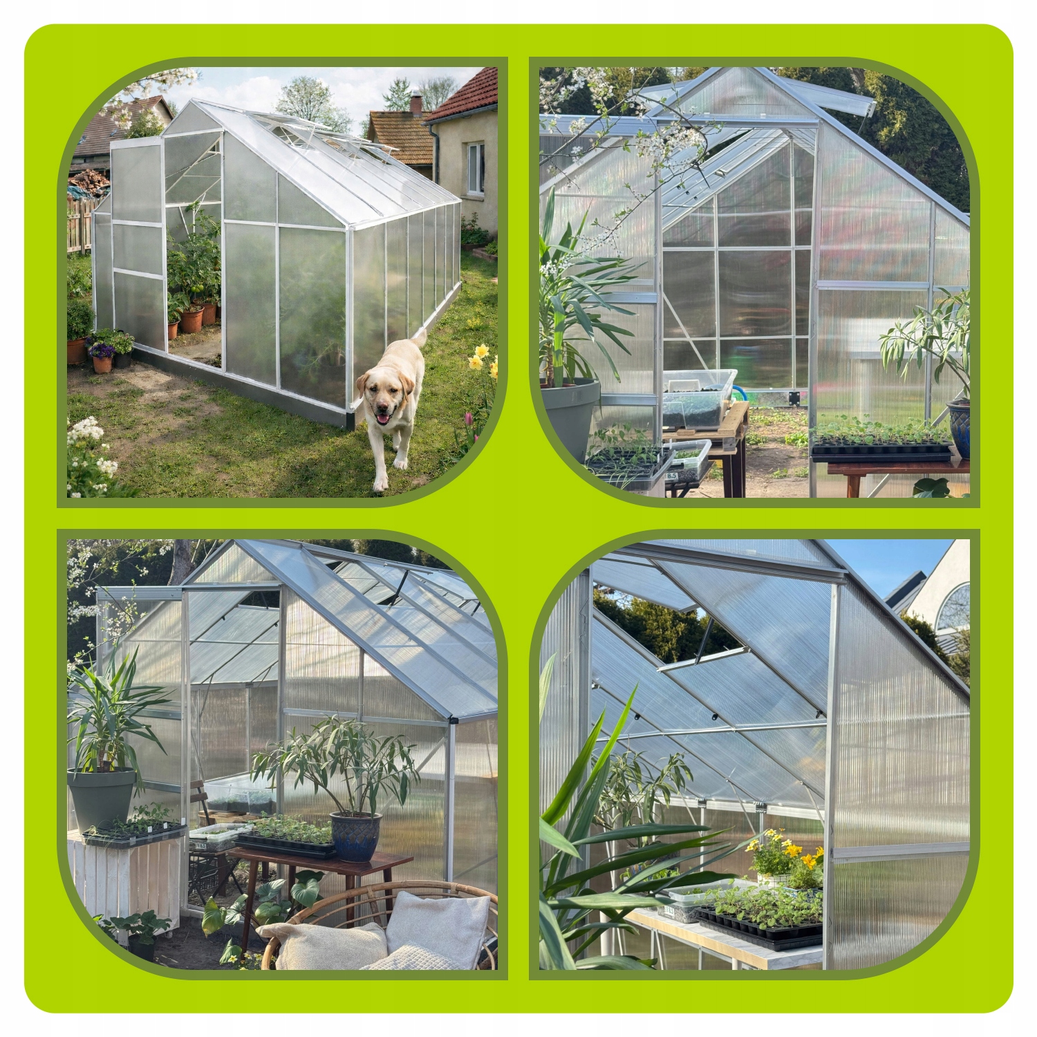 • Zainwestuj w jakość i komfort uprawy! Ta duża szklarnia z poliwęglanu i aluminium zapewni Twoim roślinom idealne warunki rozwoju przez cały sezon – niezależnie od pogody!