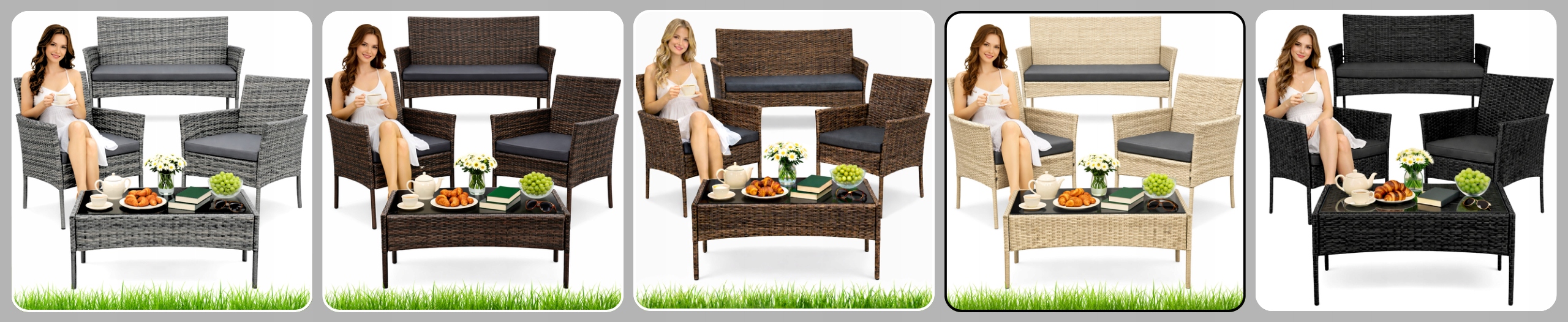 • Zestaw jest zaprojektowany z myślą o mniejszych spotkaniach. Meble wygodnie pomieszczą do 4 osób, co czyni go idealnym rozwiązaniem na taras, balkon lub do małego ogrodu.